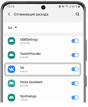 4. Найдите в списке приложение SamDom и отключите функцию.