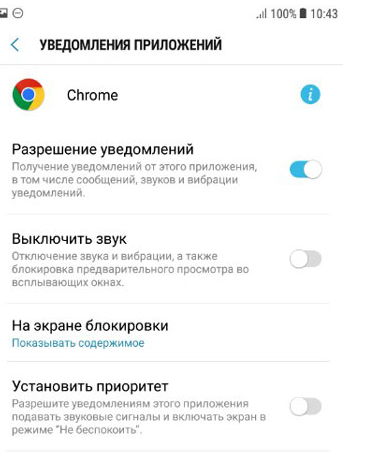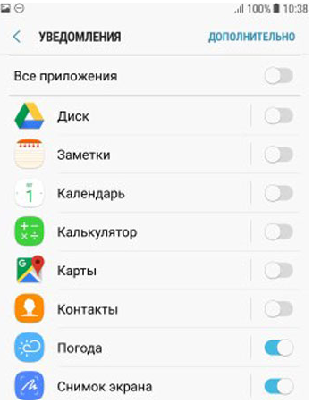 Перейдем в Настройки – Уведомления. Нам предлагают выбрать приложения, от которых хотим или не хотим получать уведомления. Просто передвиньте переключатель в нужное положение.