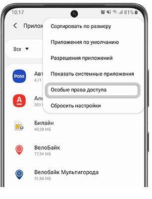 2. Нажмите на три точки, выберите пункт «Особые права доступа».